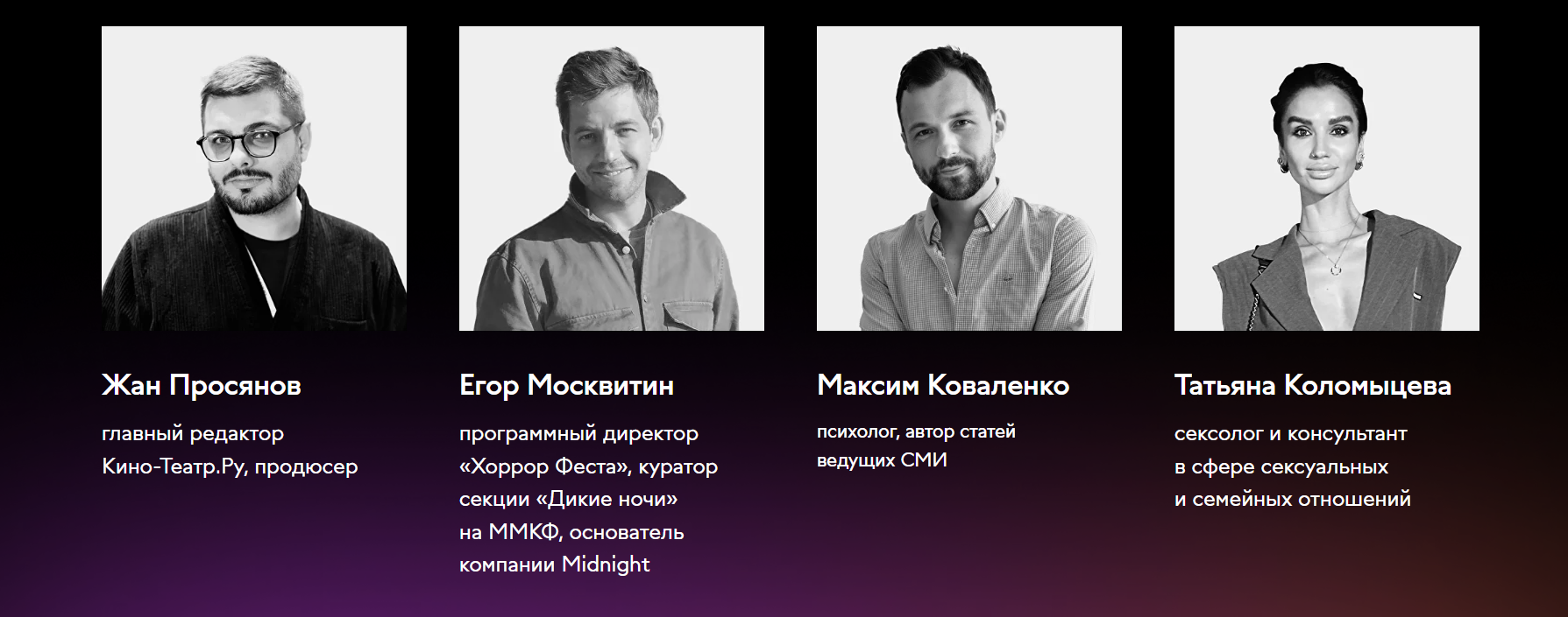 Кинокритик, куратор фестивалей, основатель компании Midnight Егор Москвитин и продюсер, главный редактор портала «Кино-Театр.Ру» Жан Просянов объяснят, как одним движением камеры или сменой ракурса можно сказать больше, чем словами. Какие детали в кадре выдают чувства героев? С помощью каких приёмов режиссёры управляют нашей симпатией и сочувствием? Ответы на эти и другие вопросы ждут гостей «viju ночь эмоций».